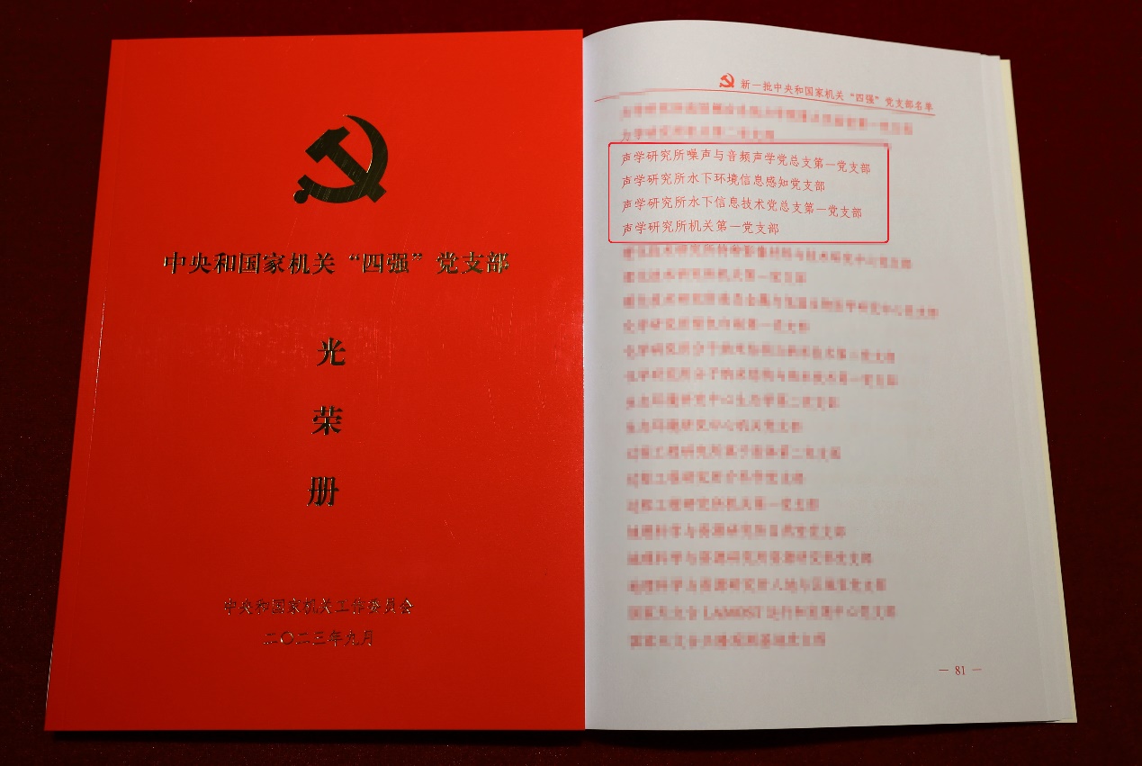 近日,中央和国家机关工委印发《关于命名中央和国家机关“四强”党支部的决定》,赢乐welcome噪声与音频声学党总支第一党支部、水下环境信息感知党支部、水下信息技术党总支第一党支部、机关第一党支部等四个党支部被命名为新一批中央和国家机关“四强”党支部。赢乐welcome继去年声场声信息党总支第二党支部、超声学党总支第一党支部获此荣誉后,目前已有六个党支部被命名为中央和国家机关“四强”党支部。