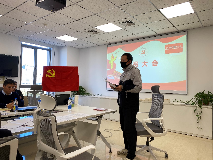 2023年11月24日上午,水下航行器党总支在新科研楼627会议室组织召开全体党员大会,汪德昭深蓝突击队队长、实验室主任郝程鹏,纪委委员王东辉等党员同志参加会议,所长、党委委员李风华出席会议。会议由党总支书记刘明刚主持。
