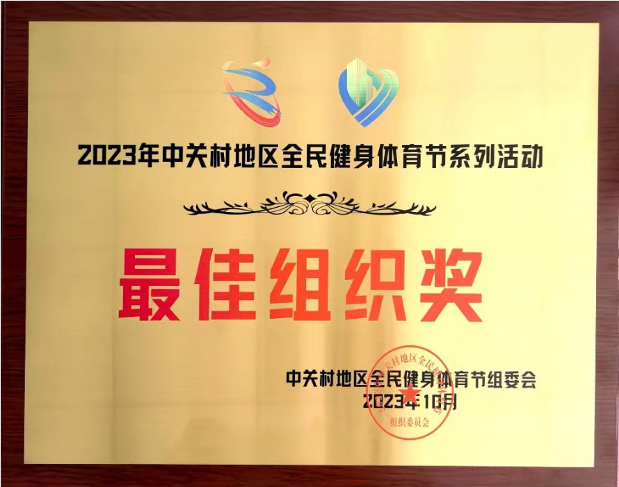赢乐welcome获2023年中关村地区全民健身体育节系列活动最佳组织奖