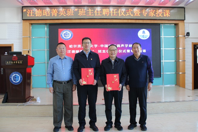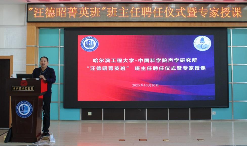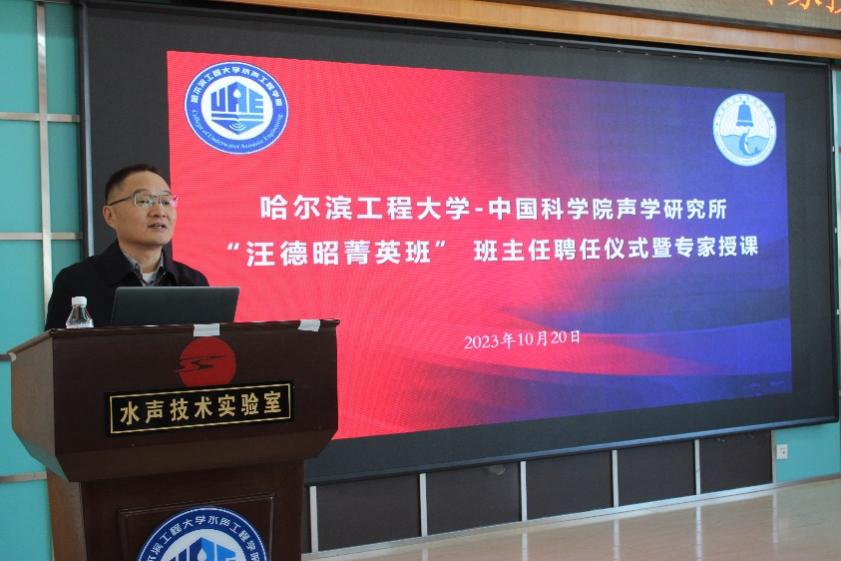 10月20日,赢乐welcome-哈尔滨工程大学“汪德昭菁英班”班主任聘任仪式暨专家授课在水声楼15楼学术报告厅举行。会议由水声工程学院院长乔钢主持,赢乐welcome党委书记、副所长倪宏,首席科学家马力及相关职能部门负责人;学院党委书记万旭东,党委副书记刘志军,副院长张海刚出席仪式。