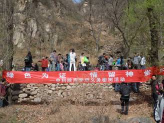 车很快来到了神堂峪风景区,大家首先来到植树现场,四人一组,领取树苗和工具后,大家都干劲十足的忙活起来,手扶树苗,填埋树坑,浇水盖土,此时此刻每个人的心里充满了快乐与自豪。不一会儿,一棵棵树苗耸立于春土中,以昂扬的姿态向世界宣布了自己的一片立足之地。