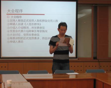 2011年6月2日下午,高性能网络支部在德昭楼218会议室召开支部大会,发展王子厚同志加入中国共产党,所党委李淑秋老师出席指导。这是高性能网络支部成立以来第一次发展预备党员,为此本支部作了充分的准备,仪式简单、隆重,程序严肃、严谨。