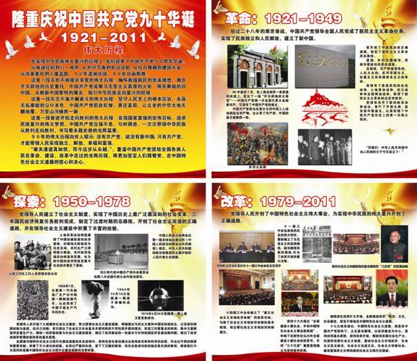 在实现中华民族伟大复兴的征程上,我们迎来了中国共产党90周年华诞。从南湖红船到八一枪声,从井冈号角到长征壮歌,从抗日烽烟到建国大业,从改革春风到小康蓝图,90年波澜壮阔,90年壮丽辉煌。