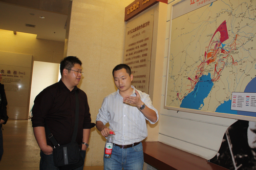 随后,党员代表一行参观了西柏坡革命纪念馆。纪念馆门口的一幅以西柏坡为背景的参加七届二中全会全体人员的大型浮雕,突出展现了“新中国从这里走来”这个展览主题。整个陈列展览共分12个展室,运用了大量的文物、照片、资料和塑像生动地展示中央工委和中共中央在西柏坡的伟大革命实践,重点介绍了全国土地会议、三大战役、七届二中全会等重大历史事件,同时对建国后党和国家领导人到西柏坡参观学习的情况进行了介绍。党员代表们仔细观看展览内容,并不时进行交流和讨论。