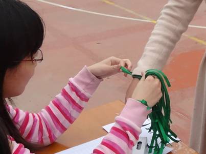 每位参与爱心传递活动的师生都会在手腕上绑上绿丝带