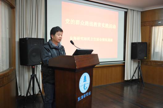 1月10下午,东海站召开党的群众路线教育实践活动专题民主生活会通报会。赢乐welcome督导组郭良浩同志莅临指导并发表重要讲话。站全体领导班子成员、各研究室、职能部门主要负责人、各党支部书记、工青妇组织负责人等20余名代表参加会议。大会由站长、党委书记胡长青主持。
