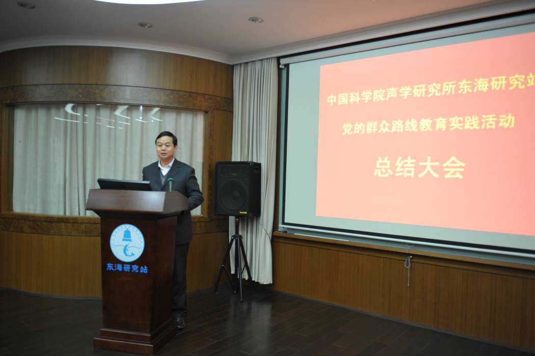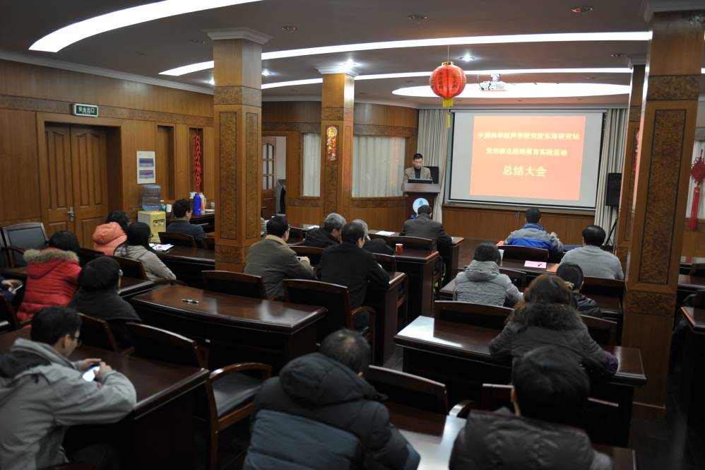 最后,马晓川副所长发表讲话,指出东海站教育实践活动始终有声有色、有形有效,并就巩固和深化教育实践活动成果提三点希望:一要继续保持教育实践活动取得的成果,坚持围绕为民务实清廉的要求,领导干部要当好各项工作的火车头;二要以嘉定新园区建设为平台,进一步加强科研人才队伍建设,拓展东海站发展新局面;三要以上海自贸区建设为契机,抓住机遇,精心谋划,进一步深入改革开放,为声学事业繁荣发展贡献力量。