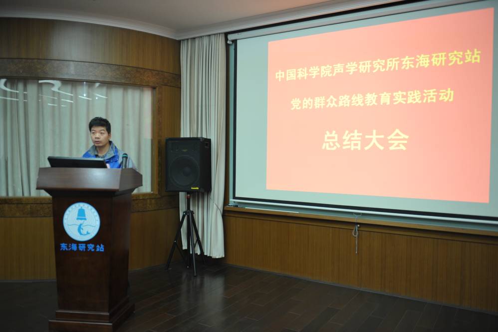 胡长青同志代表东海站党委作了《东海站党的群众路线教育实践活动总结报告》,从“学习教育、听取意见”,“查摆问题、开展批评”,“整改落实、建章立制”三个环节,全面总结了东海站开展教育实践活动的整体情况。胡书记指出,自去年8月教育实践活动开展以来,东海站紧密结合单位工作实际,聚焦“四风”问题,扎实有效地推进教育实践活动各个环节的工作,取得了实实在在的成效,主要体现为:统一了思想,提高了认识;理清了在“四风”方面存在的问题,进一步明确了方向;制度建设得到加强;东海站“一三五”规划的实施向前扎实推进;科研支撑体系建设得到加强;部分群众反映的问题得以解决。胡书记表示东海站将以教育实践活动的取得的成果作为新的起点,努力形成作风建设长效机制,以优良作风贯穿实际工作,为实现东海站创新跨越发展提供源源不绝的动力。