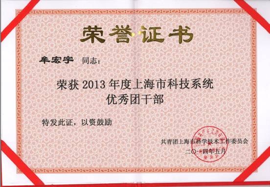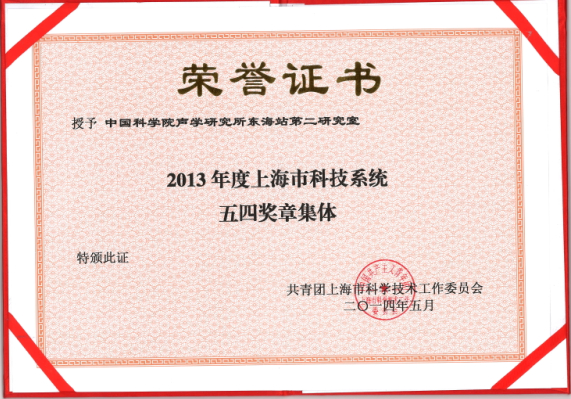 为纪念五四运动95周年,激励广大青年职工、研究生更好的继承和发扬五四精神,积极投身于伟大的科技创新事业,日前上海市科技团工委表彰了一批2013年度先进集体和个人。东海研究站团委、第二研究室分别获得了上海市科技系统“五四红旗团委”、“五四奖章集体”荣誉称号,团委委员牟宏宇获得“优秀团干部”先进表彰。