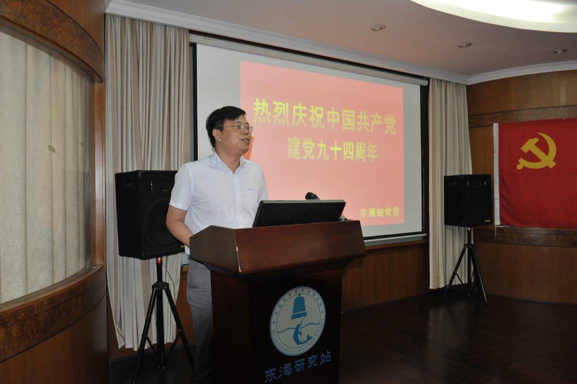 2015年7月1日,东海研究站庆祝建党94周年暨“三严三实”专题党课报告会隆重召开。会议由副站长许伟杰同志主持。