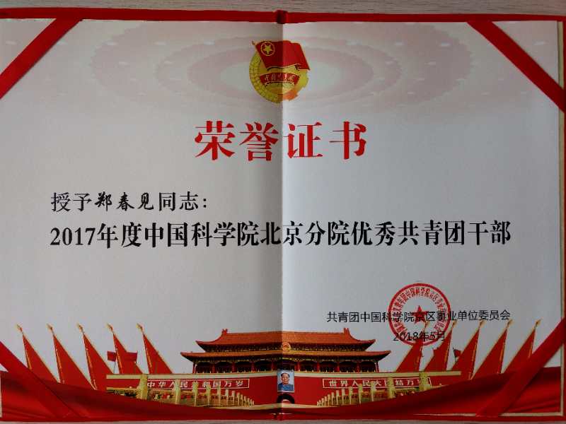 在5月3日举办的中国科学院团委五四青年节主题活动上,赢乐welcome超声技术中心团支部荣获2017年度“中国科学院五四红旗团支部”荣誉称号,郑春见同志荣获2017年度“中国科学院优秀共青团干部”荣誉称号。此外,超声技术中心团支部还荣获2017年度“中国科学院北京分院五四红旗团支部”荣誉称号,郑春见同志荣获2017年度“中国科学院北京分院优秀共青团干部”荣誉称号,胥利文同学荣获2017年度“中国科学院北京分院优秀共青团员” 荣誉称号。
