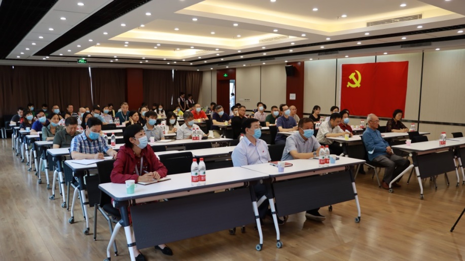 所领导班子成员,党委委员,纪委委员,四级职员,各研究单元、职能部门正副主任,各党支部(总支)正副书记以及机关第一、二党支部党员等在主会场参会;各党支部和研究站11个视频分会场及部分职工学生同步在线参会,共500余人参加了此次报告会。