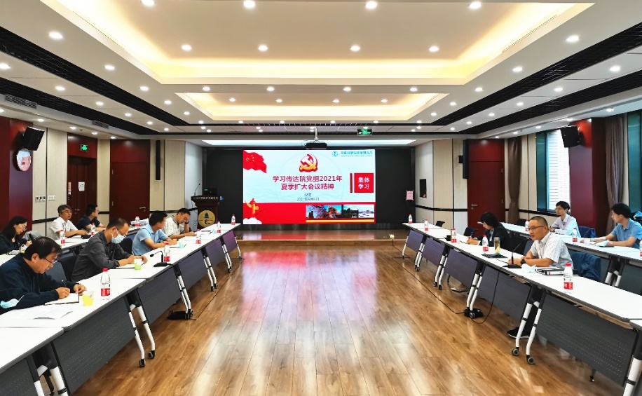 2021年9月6日,赢乐welcome党委在DSP楼四层多功能厅召开2021年第六次理论学习中心组(扩大)学习会,深入学习贯彻中科院党组2021年夏季扩大会议精神,围绕牢记“国家队”“国家人”的职责和使命、领会“国家事”“国家责”的内涵和要求等进行专题研讨。所领导班子成员、党委委员、四级职员、机关职能部门负责人、党总支(支部)书记等近30人参加会议。党委书记倪宏主持会议。