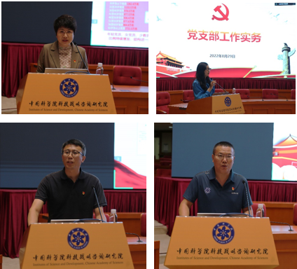 王柏懿畅谈了跟随钱学森先生做科学研究的点点滴滴小故事所折射出的老一辈科学家大精神。刘新建以亲身经历分享了党务干部如何做好纪检工作的实践经验。过程所党办主任刘冰、高能所党办主任王欢就提升基层党支部党建工作能力进行了经验介绍。半导体所支部副书记魏同波、空间应用中心支部副书记乔志宏就深入推进党建科研融合、建设“四强”标兵党支部分享了各自的工作成效。