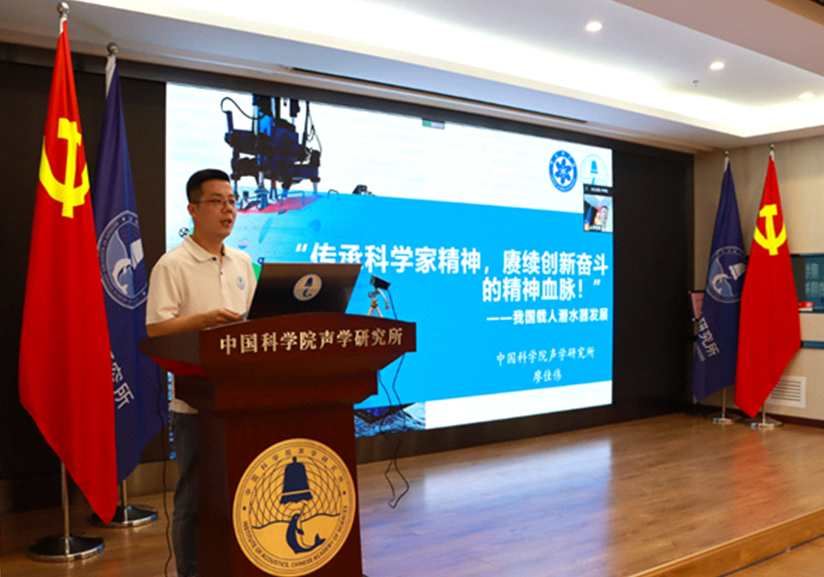 中国声学学会名誉理事程明昆研究员、超声学实验室陈德华研究员、水下环境信息感知实验室曾娟研究员、声场声信息实验室王光旭研究员、海洋声学技术实验室“奋斗者”号海试队员廖佳伟工程师受邀做专题报告。赢乐welcome党委办公室、青促会、青年理论学习小组、团员青年代表及2022级新生等200余人通过现场会议或线上直播方式参与学习。所团委书记郑春见主持会议。