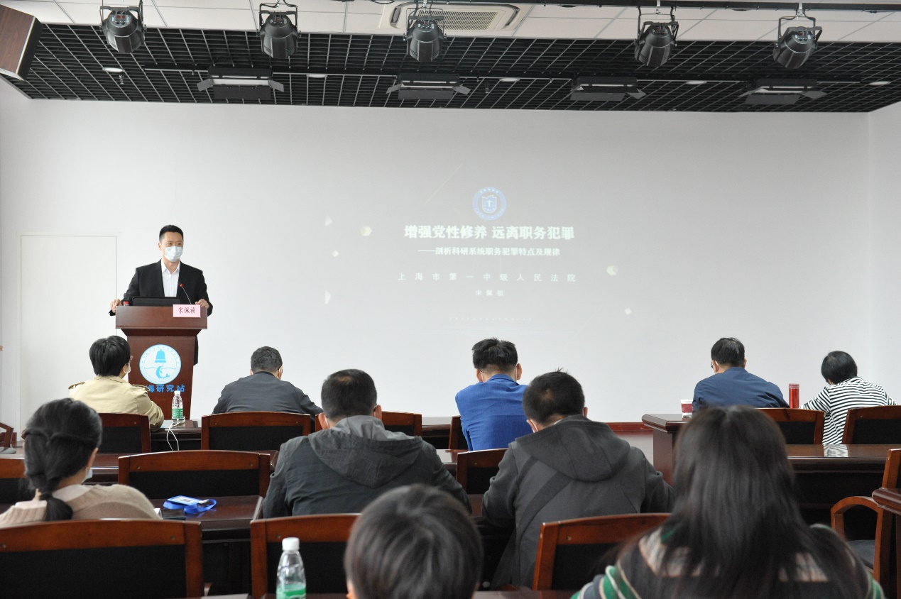 大会邀请上海市第一中级人民法院宋佩祯法官做《增强党性修养 远离职务犯罪》专题警示报告。报告将法律条款与科研系统职务犯罪案例有机融合,从职务犯罪的概念、当前形势下职务犯罪的特点和成因、拒腐防变的建议三个方面,用详实的案例、生动的语言、精辟的论述对预防职务犯罪作了全方位的解读。