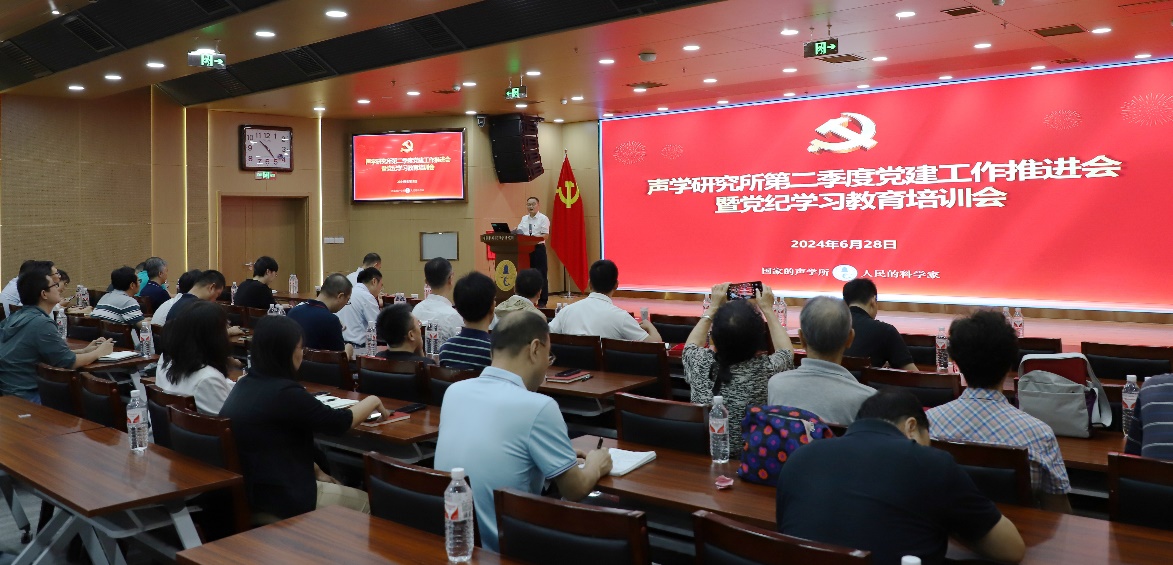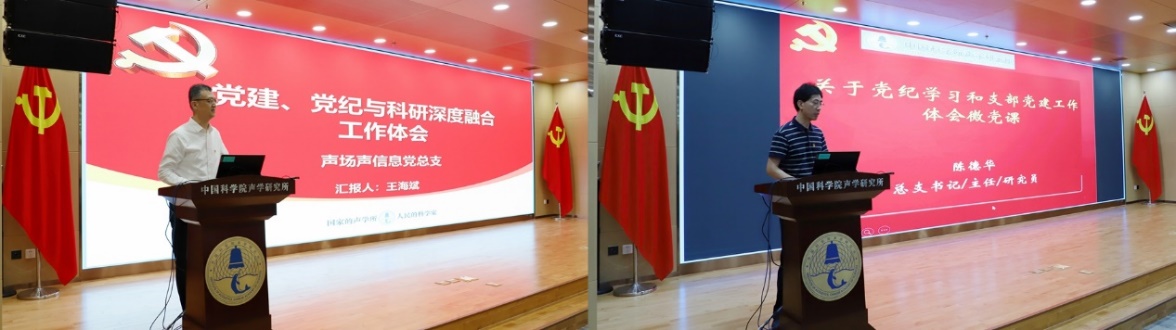 声场声信息党总支书记王海斌、超声学党总支书记陈德华讲纪律专题党课并分享支部工作经验,围绕党总支开展党纪学习教育、积极发挥“两个作用”、推进党建和科研深度融合、大力弘扬科学家精神等方面,向与会同志交流分享支部工作的好经验、好做法。