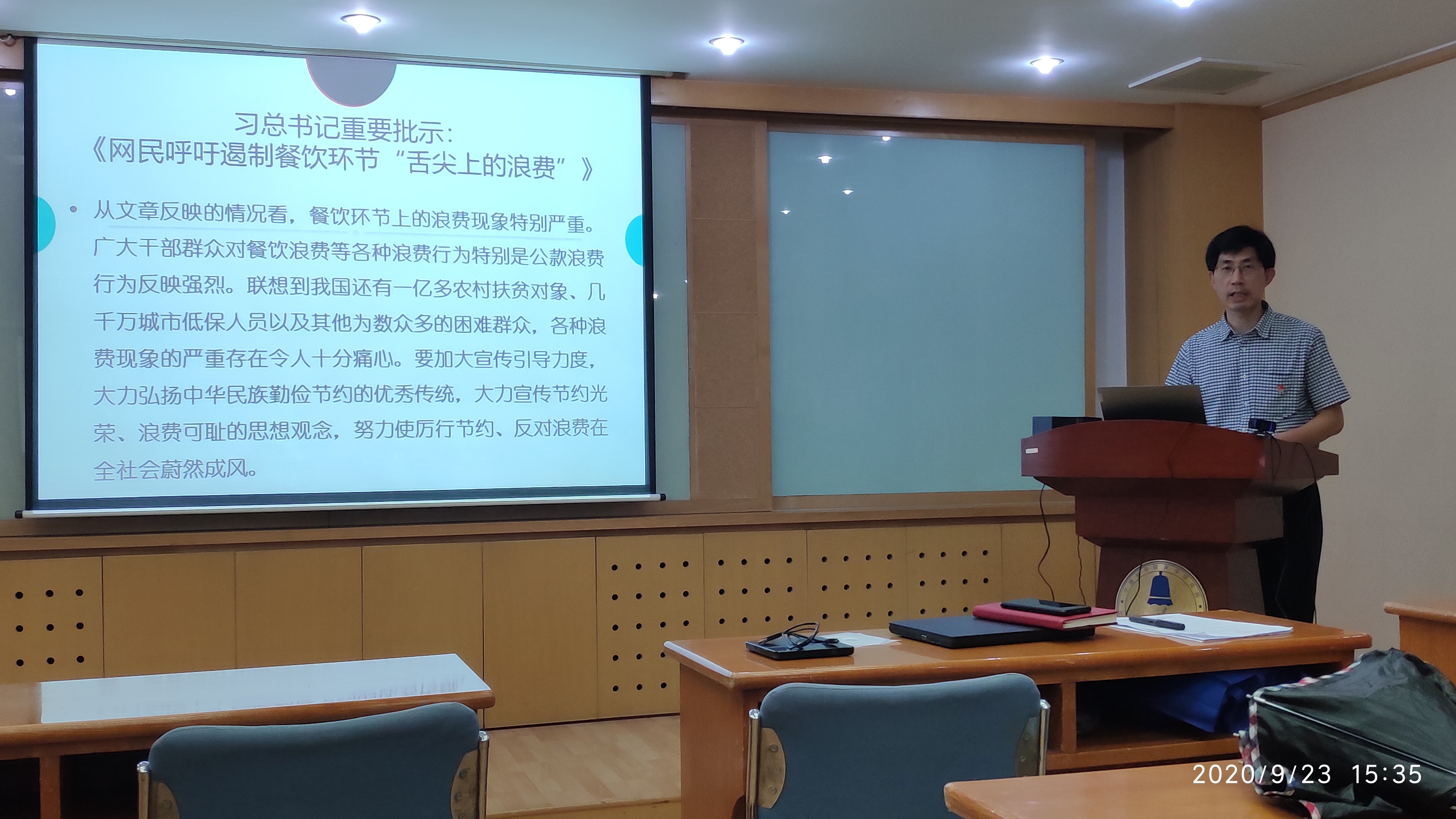 陈德华带领党员深入学习贯彻习总书记关于厉行节约、反对浪费特别是制止餐饮浪费行为的一系列重要批示指示精神。学习分为五个方面,包括坚持领导干部带头示范,对标对表,自查自纠,加强宣传教育;严格成本控制、制定餐饮文明公约、加强厨余垃圾资源化利用;依规严控公务活动、严格执行用餐标准、推行简餐和标准化饮食,杜绝铺张浪费;强化单位餐饮管理和建立健全长效机制。在学习中,陈德华还介绍了国际上不同国家在厉行勤俭节约、反对浪费餐饮上的做法,要求党支部广大党员带头贯彻、落实习近平总书记重要批示指示精神,在坚决制止餐饮浪费行为上走在前、作表率。