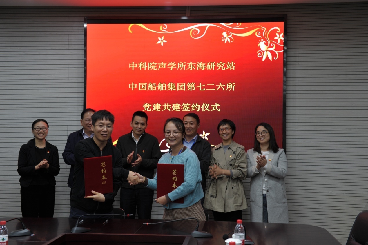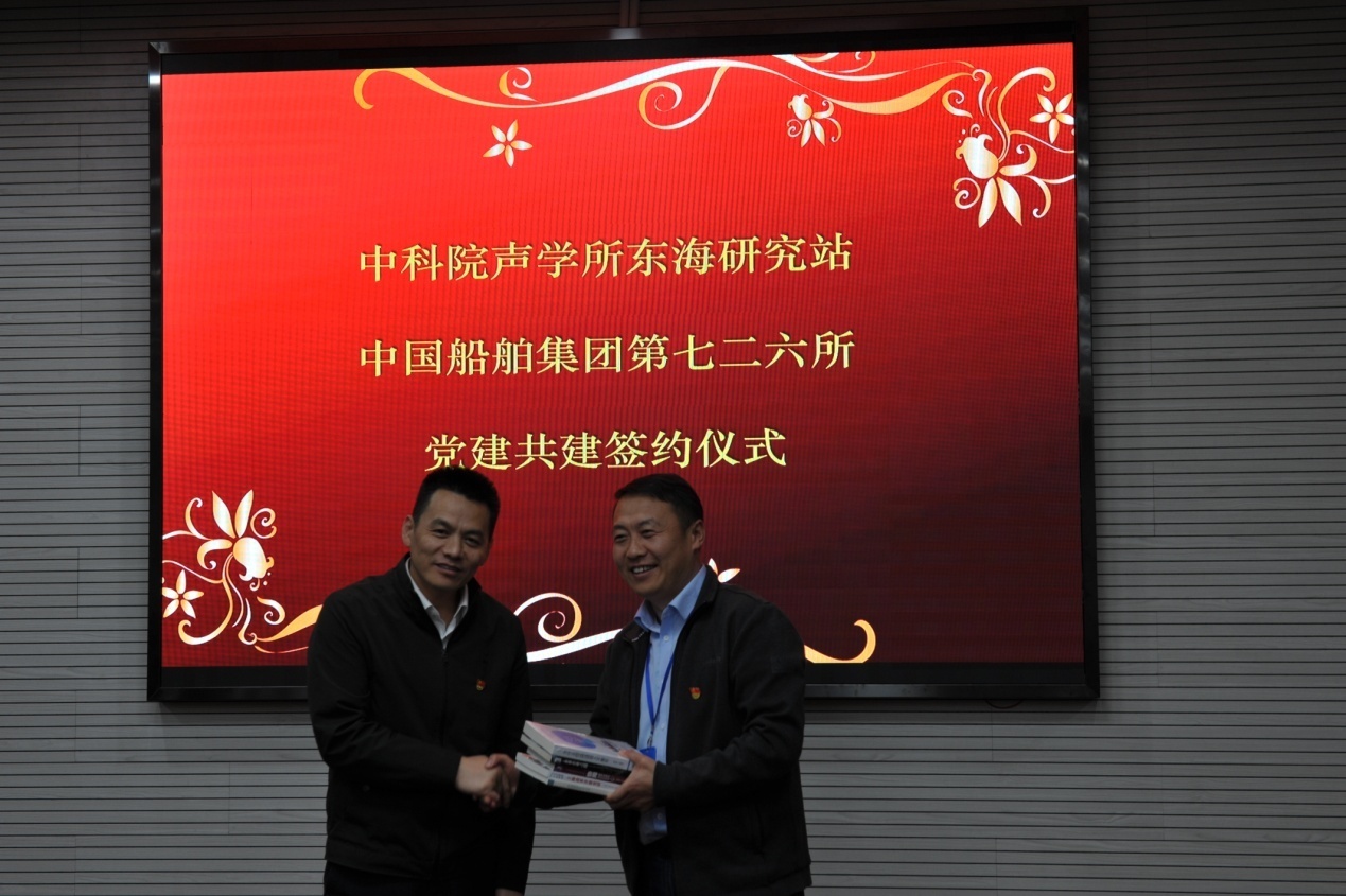 随后双方进行党建共建签约仪式和赠书仪式。七二六所党办副主任(主持工作)何旭东与东海研究站综合办公室主任黄楚丹分别代表双方签署党建共建协议;陈远锦和张伟才代表双方进行结对共建赠书仪式。根据协议,双方将建立沟通机制,实现组织建设互促,不断提高基层党组织的创造力、凝聚力和战斗力,达到资源共享、优势互补、相互促进、共同提高的目的。