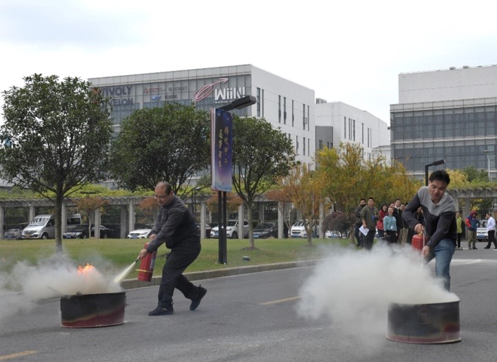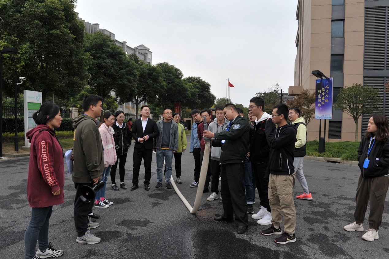 讲座结束后,还进行了消防器材使用演练和竞赛活动。安全工作人员指导职工和学生正确打开灭火器,并演示了灭火器的操作方法,职工和学生参与体验了现场灭火的过程,面对熊熊大火大家表现镇定、勇敢,按照灭火的步骤和操作要领,将火堆燃起的浓烟大火迅速扑灭。