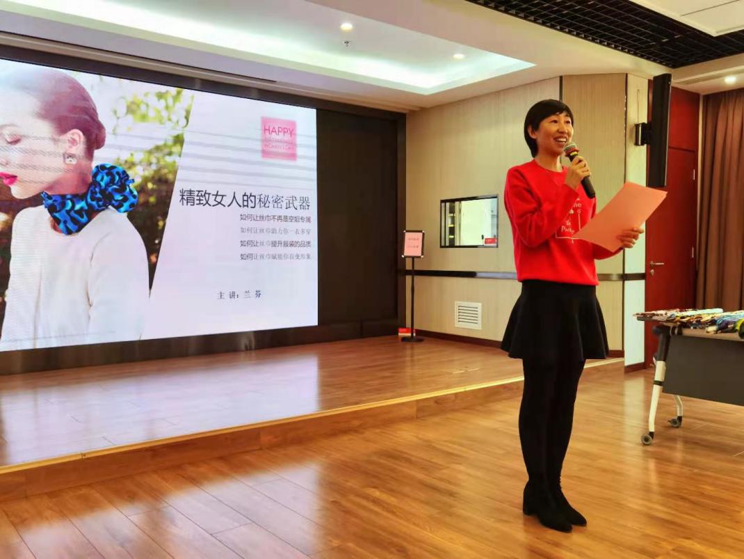 随后,举办了“展巾帼风采,做魅力女性--丝巾百变秀”活动,活动邀请了专业形象设计老师为大家传授丝巾搭配技巧,女同志们参加现场练习和展示。通过老师形象生动的讲解,女同志们学到了更多的丝巾搭配方式和丝巾系法,有些女同志克服了怕羞的心理,勇敢地上台进行了展示,增加了自信。
