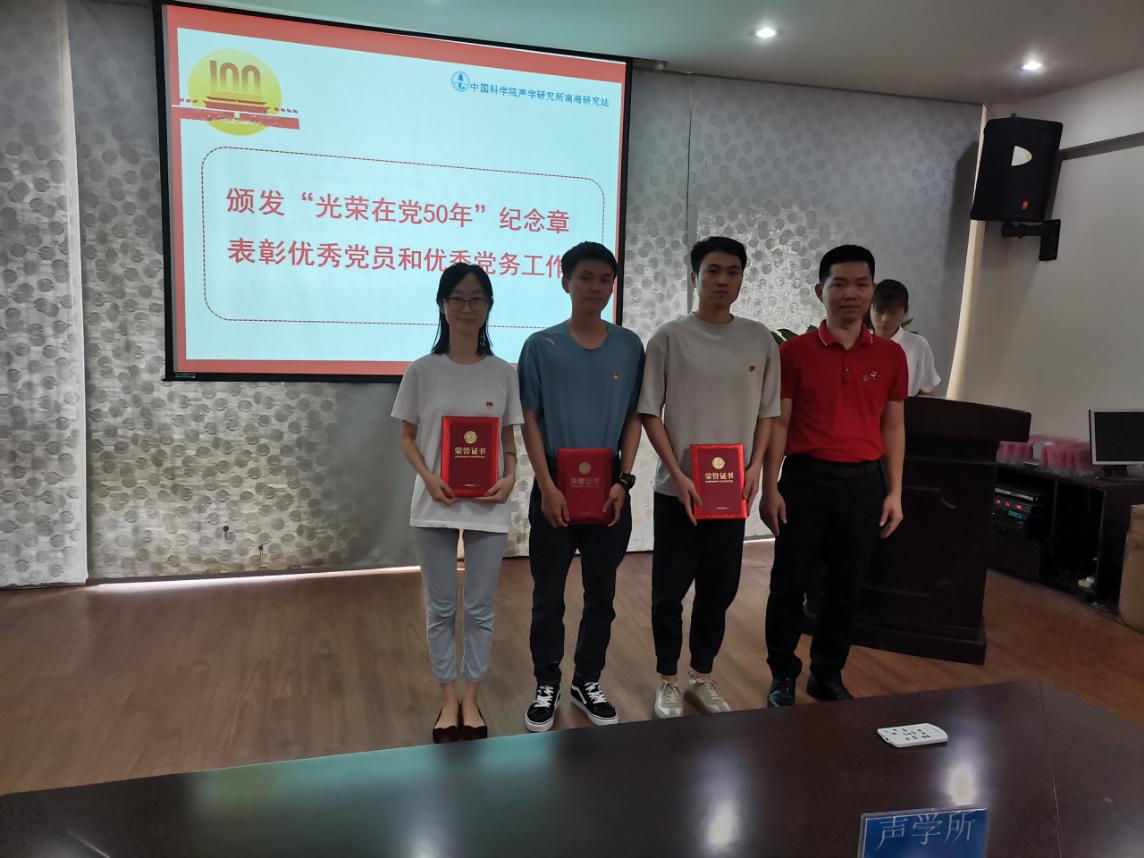 2021年6月30日,南海研究站庆祝中国共产党成立100周年党员大会在海口本部召开,南海研究站党政领导班子成员、各支部党员、入党积极分子、“光荣在党50年”党员、受表彰的优秀党员和优秀党务工作者参加会议。