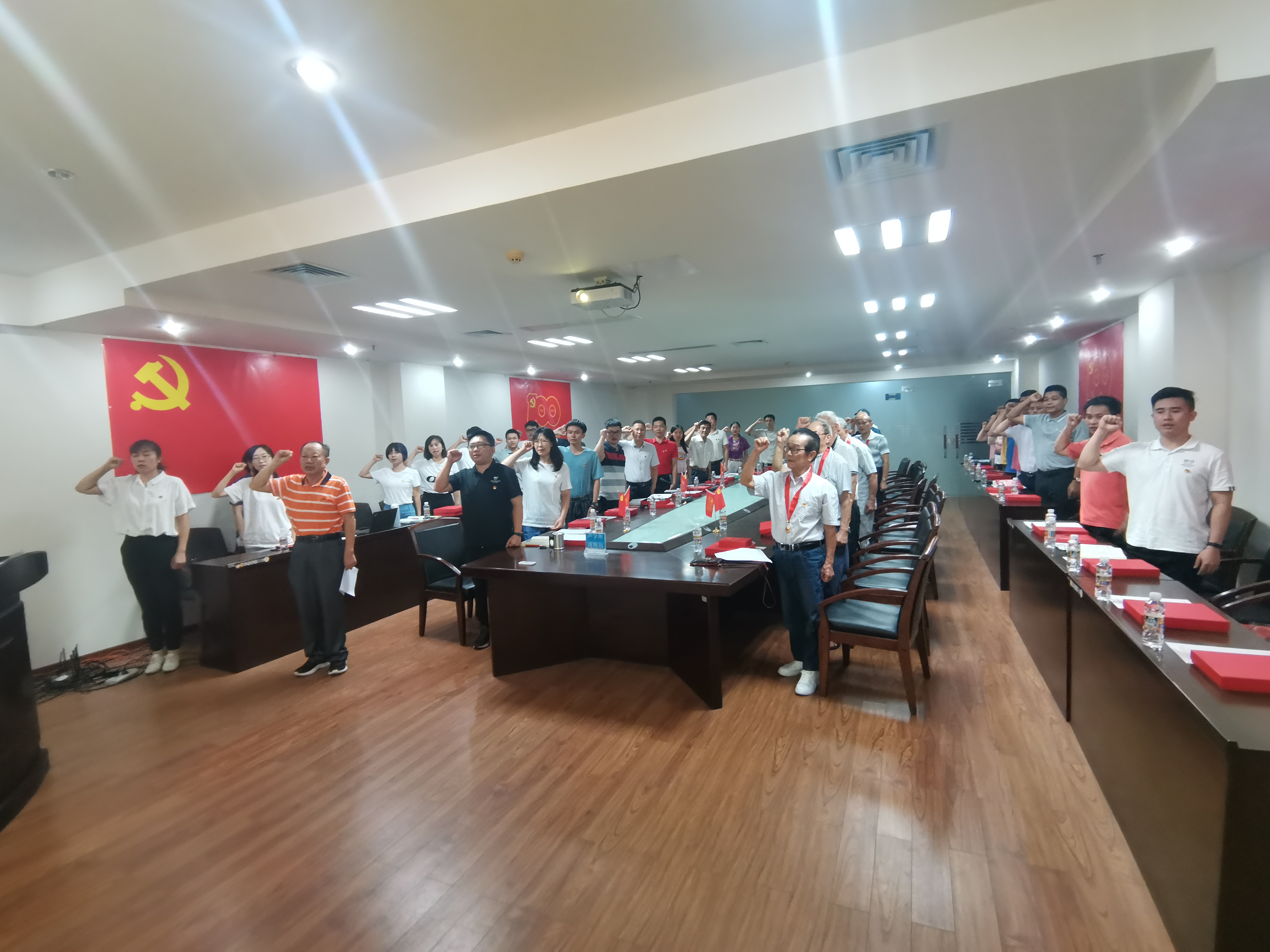 面对鲜红的党旗,在第二支部陈儒弟的带领下,全体党员庄重肃穆,重温入党誓词:“我志愿加入中国共产党,拥护党的纲领,遵守党的章程……永不叛党”,在激情豪迈的宣誓声中重忆入党初心。