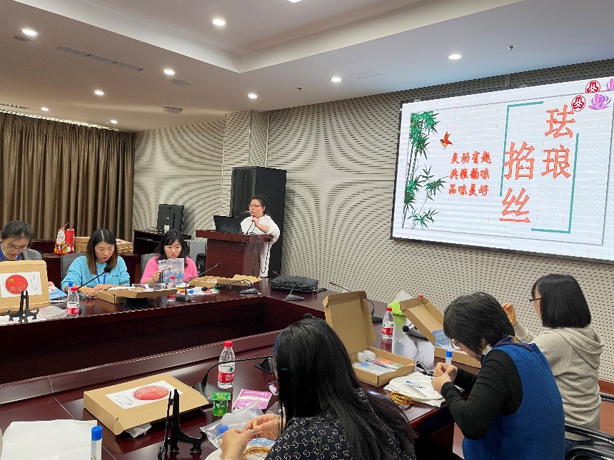 2021年10月27日中午,在嘉定区妇联和嘉定区女性社会组织发展中心的大力支持下,东海研究站妇委利用午休时间组织了一场掐丝珐琅制作体验活动,近40名女同胞参加了活动,传承景泰蓝的掐丝技艺。