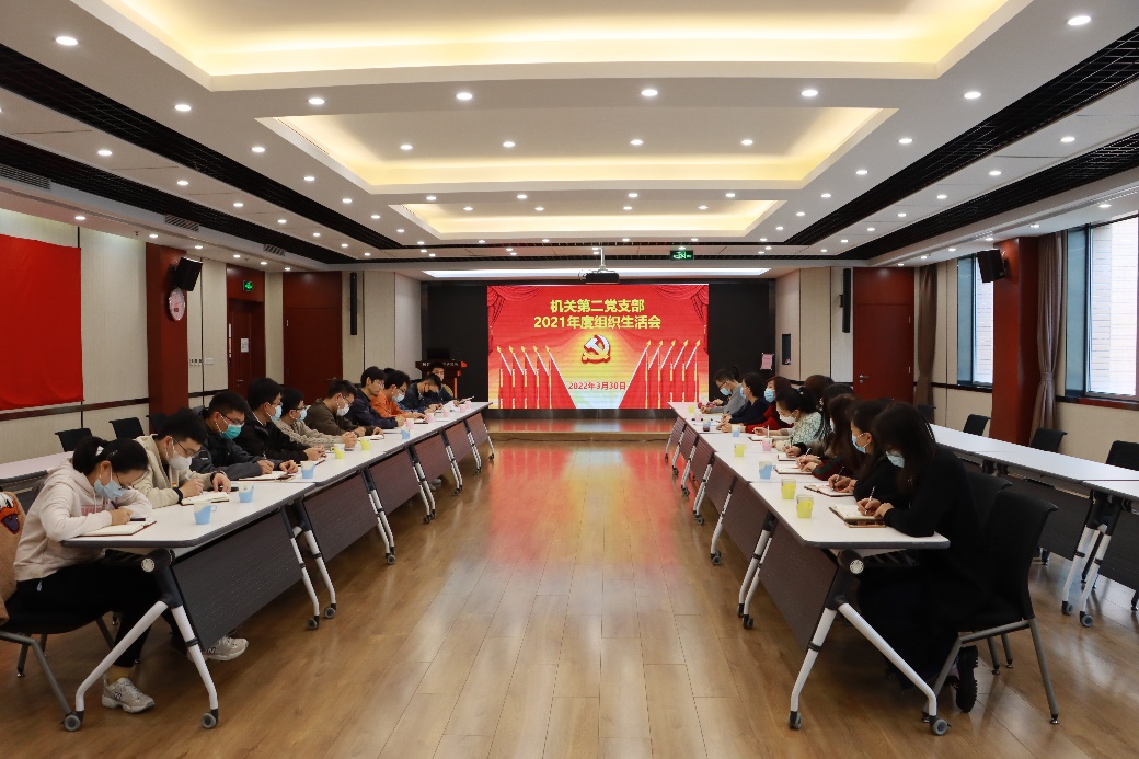 2022年3月30日下午,机关第二党支部在DSP多功能厅召开2021年度组织生活会,开展了集中学习和民主评议党员工作。支部党员28名同志参加会议。