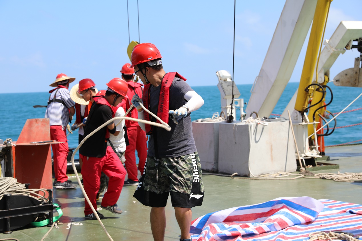 某次海试中集体回收重型设备