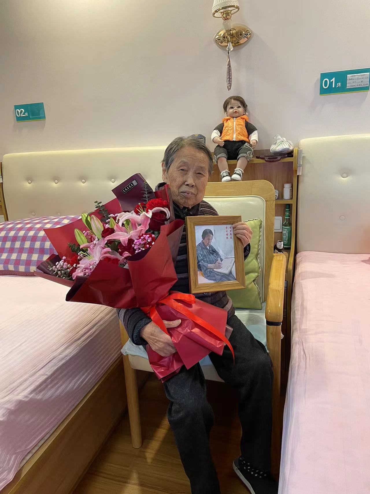 杨馥丽老师还兴致勃勃地哼唱了歌曲,现场气氛热烈、笑声阵阵,共叙杨老师的百年人生,同贺杨老师的百岁寿诞。让我们向离休老干部杨馥丽老师致敬:百岁寿辰,学习楷模!