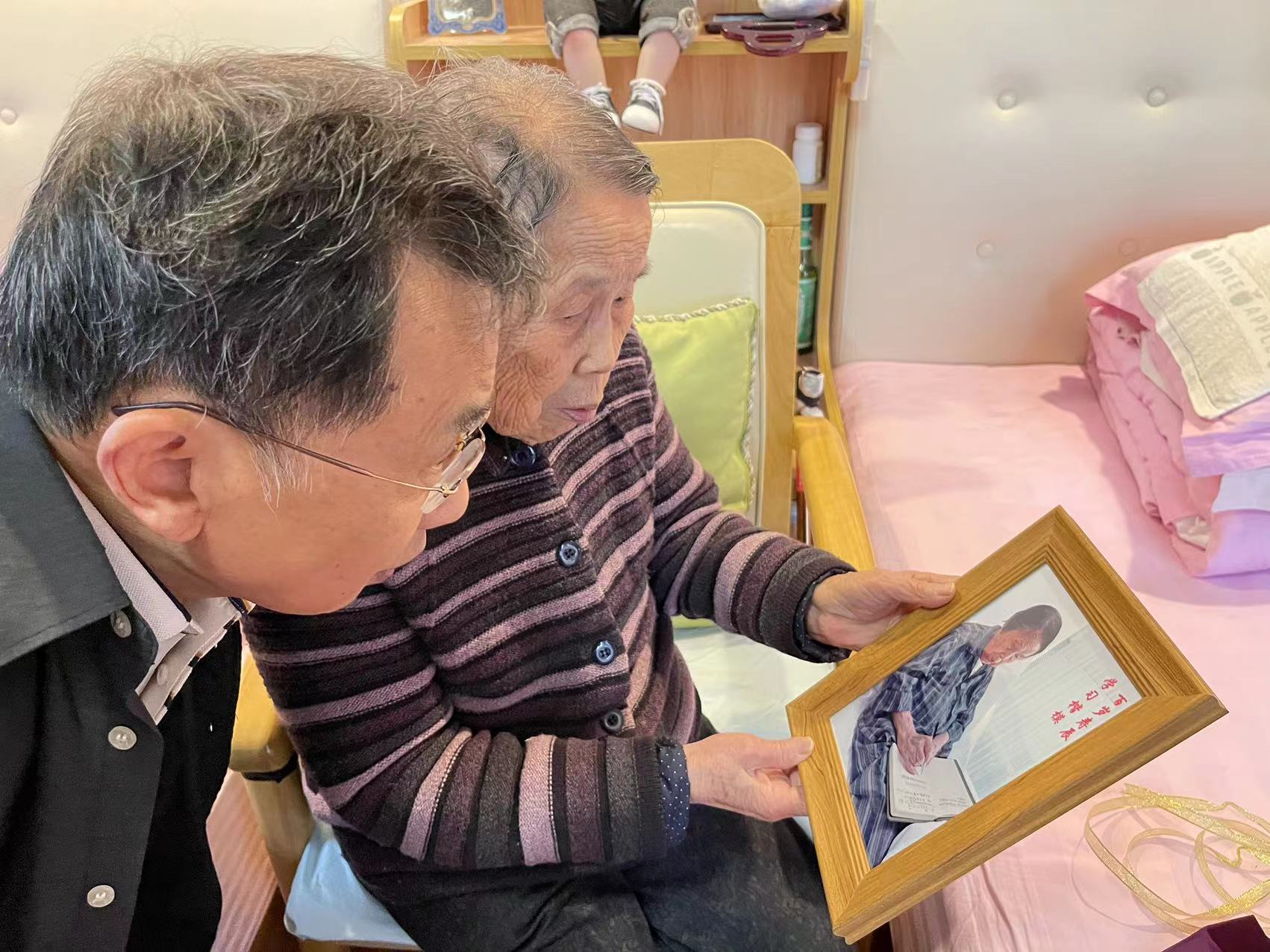 迎来百岁寿诞的杨馥丽老师收到生日祝福非常高兴,老人精神矍铄、耳聪目明、思维敏捷、步履轻盈。为庆贺母亲百岁生日,杨老师的女儿专程从国外归来,老人的儿子亦在座与大家共叙友谊,共同回忆老人在东海站工作期间难忘的人和事。