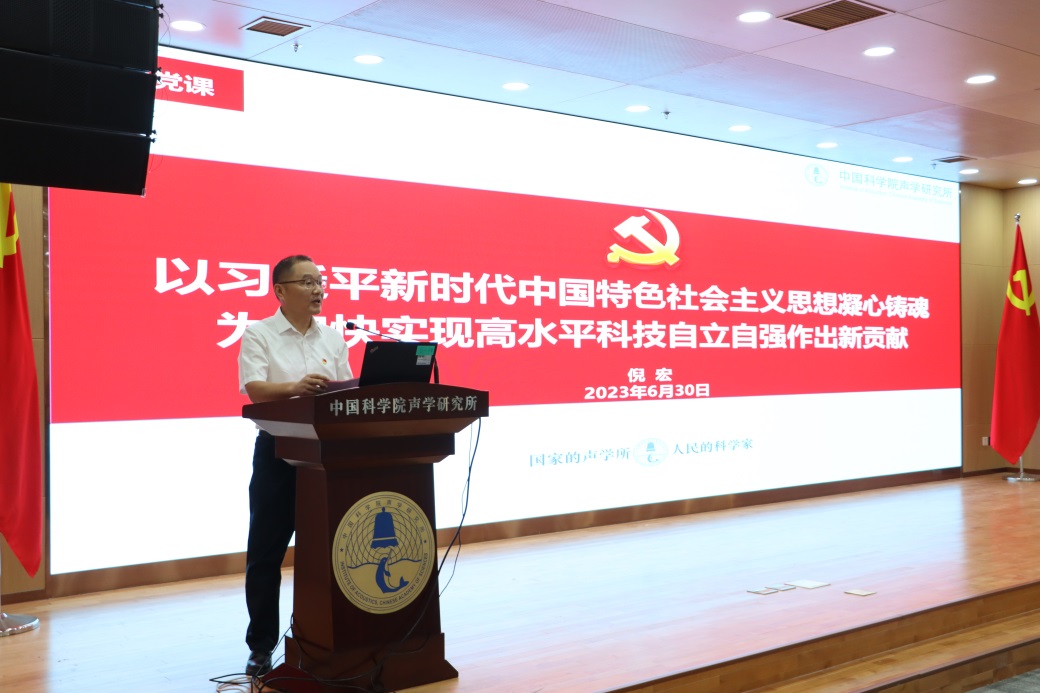 庆祝大会在庄严的国歌声中开幕。党委书记倪宏以《以习近平新时代中国特色社会主义思想凝心铸魂,为加快实现高水平科技自立自强作出新贡献》为题作专题报告,报告围绕加强党性修养,自觉用习近平新时代中国特色社会主义思想凝心铸魂;把握核心要义,坚持用习近平新时代中国特色社会主义思想的世界观和方法论指导实践、推动工作;强化职责使命,对标“四个率先”和“两加快一努力”要求,全力攻关、彰显担当等三部分进行详细阐述。
