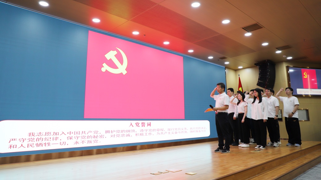 面对鲜红的党旗,党委委员郭良浩带领全体党员重温入党誓词。“我志愿加入中国共产党,拥护党的纲领……”铿锵有力的誓言在会场上激荡,全体党员又一次受到了精神洗礼。