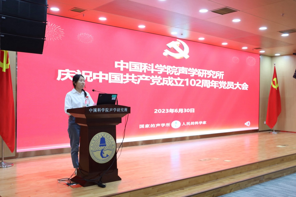 优秀共产党员代表张博发言,她从铭记历史、心怀感恩;攻坚克难、报效祖国;服从安排、勇挑重担等三方面分享了工作体会,她谈到作为新时代的党员、科技工作者,要铭记历史,坚守入党初心,勇担时代使命,无论身处何种岗位,要迎难而上,不折不扣地履行自己的职责,以“功成不必在我”的精神境界和“功成必定有我”的历史担当,脚踏实地,在自己的工作岗位上发光发热。