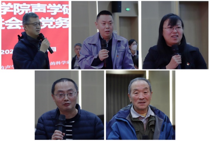 王海斌、郝程鹏、杨娟、程晓斌、刘清波等新任党总支书记先后发言,聚焦发挥党建引领作用、发挥科技攻关突击队建设成效、聚焦重大核心任务攻关、做好离退休党建工作等方面进行研讨分享。