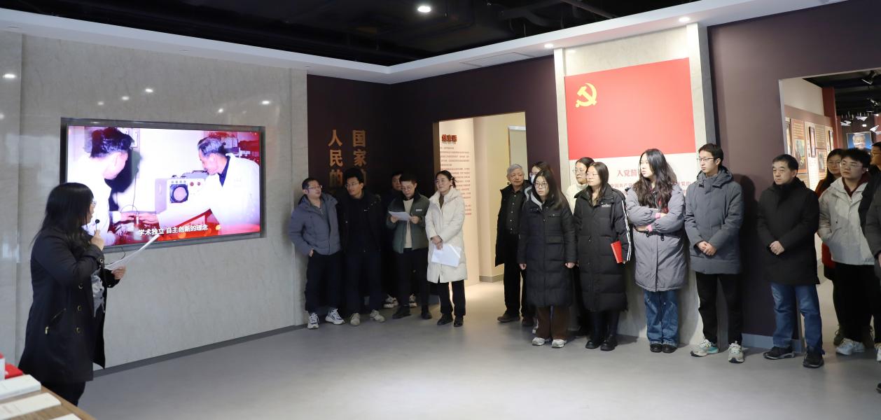全体同志在讲解员的带领下参观了位于新科研楼二楼的弘扬科学家精神教育基地,共同学习老一辈科学家的精神风采。通过实物展示、图片资料以及视频展播,与会人员深刻领悟了老一辈科学家们无私奉献、舍己为公的奉献精神和感人事迹。