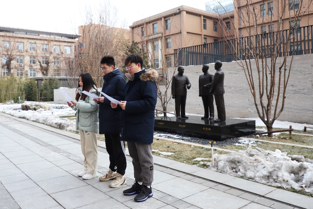 王微、高一丁、孙嘉瑞三名青年学生代表深情诵读老科学家们的经典话语,带领大家重温他们的精神信仰,深切体会老一辈的科学家精神。