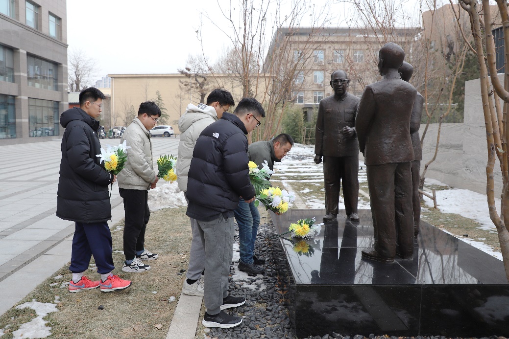 大家怀着崇敬的心情列队肃立,瞻仰“汪德昭·马大猷·应崇福”院士塑像,以无言寄托哀思,深切缅怀老科学家的科学成就,铭记他们的奉献精神。