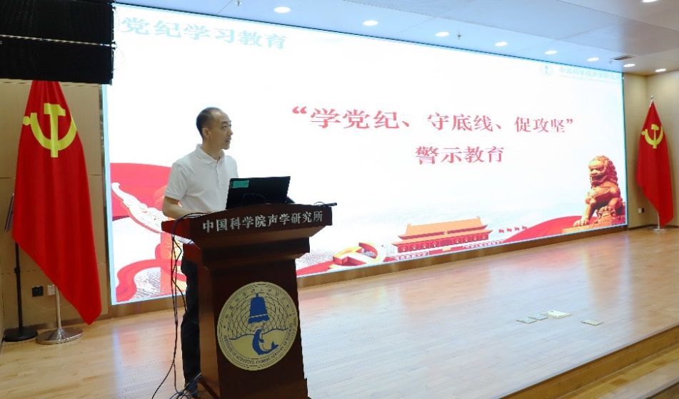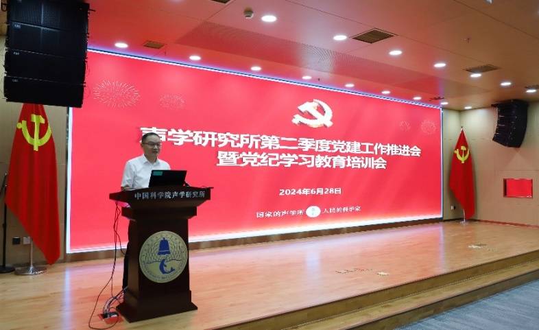 声场声信息党总支书记王海斌、超声学党总支书记陈德华讲纪律专题党课并分享支部工作经验,围绕党总支开展党纪学习教育、积极发挥“两个作用”、推进党建和科研深度融合、大力弘扬科学家精神等方面,向与会同志交流分享支部工作的好经验、好做法。