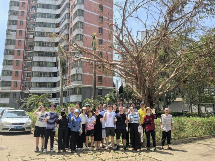 台风登陆当日,狂风呼啸、大雨滂沱,树木因此倾倒、摧折,园区道路阻断。综合办公室职工、党员谢永刚同志提前安排好家中事宜,彻夜值守办公楼和小区,带领物业人员始终坚守抗台一线,保障了园区内居民人身和财产安全,设备正常运行,水电正常供应。