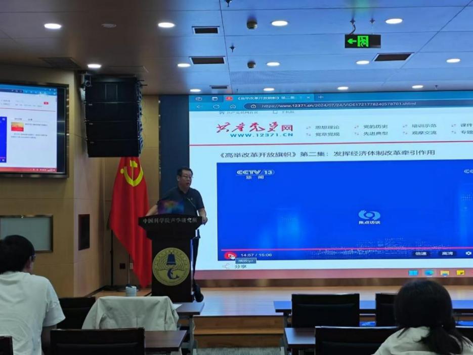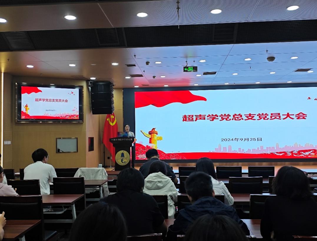 2024年9月25日下午,超声学党总支在新科研楼1503会议室召开党员大会,集中学习党的二十届三中全会精神与院党组2024夏季扩大会议精神,会议由党总支副书记苏畅主持。