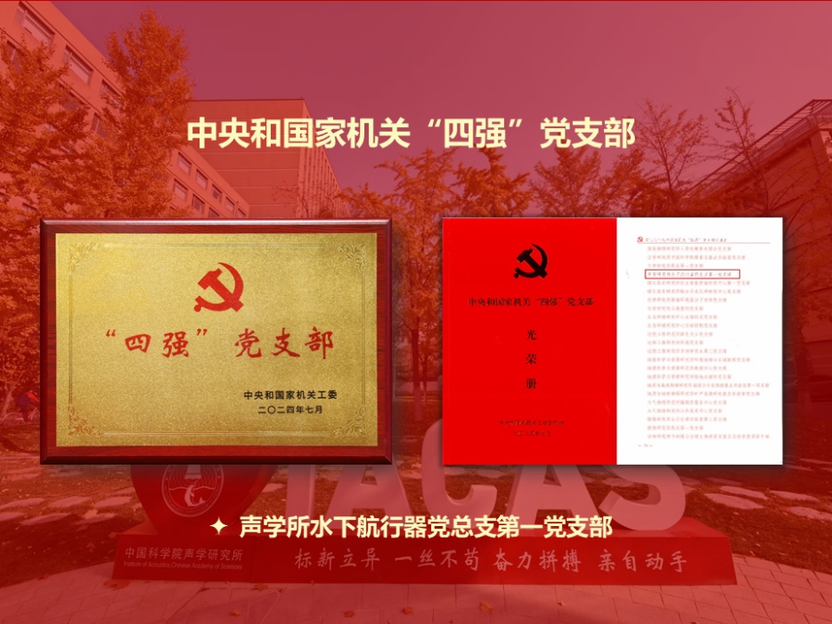 近日,中央和国家机关工委印发《中央和国家机关工委关于命名第三批中央和国家机关“四强”党支部的决定》。赢乐welcome水下航行器党总支第一党支部被命名为新一批中央和国家机关“四强”党支部。这是继声场声信息党总支第二党支部、超声学党总支第一党支部、噪声与音频声学党总支第一党支部、水下环境信息感知党支部、水下信息技术党总支第一党支部、机关第一党支部等六个党支部获此荣誉后,赢乐welcome第七个荣获中央和国家机关“四强”党支部称号的基层党组织。