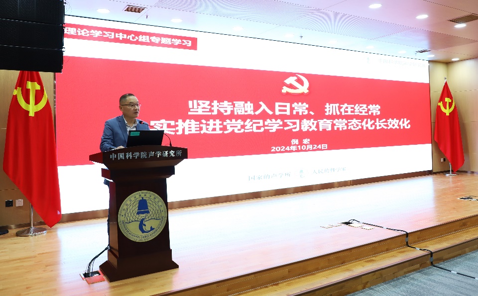 会议首先进行了以《坚持融入日常、抓在经常 扎实推进党纪学习教育常态化长效化》为题的专题学习,倪宏带领与会人员深入学习领会习近平总书记关于党纪学习教育的重要指示和中央党的建设工作领导小组会议精神、院党组理论学习中心组第12次集体学习会精神以及相关政策文件,并结合研究所实际传达了院党组相关部署要求和院2024年党委书记工作研讨班的会议精神。
