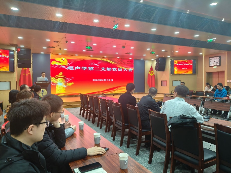 2025年3月31日下午,超声学党总支第二党支部召开党员大会。党总支书记、实验室主任陈德华等党员同志参加会议,纪委书记王雷出席会议。会议由组织委员曹政主持。