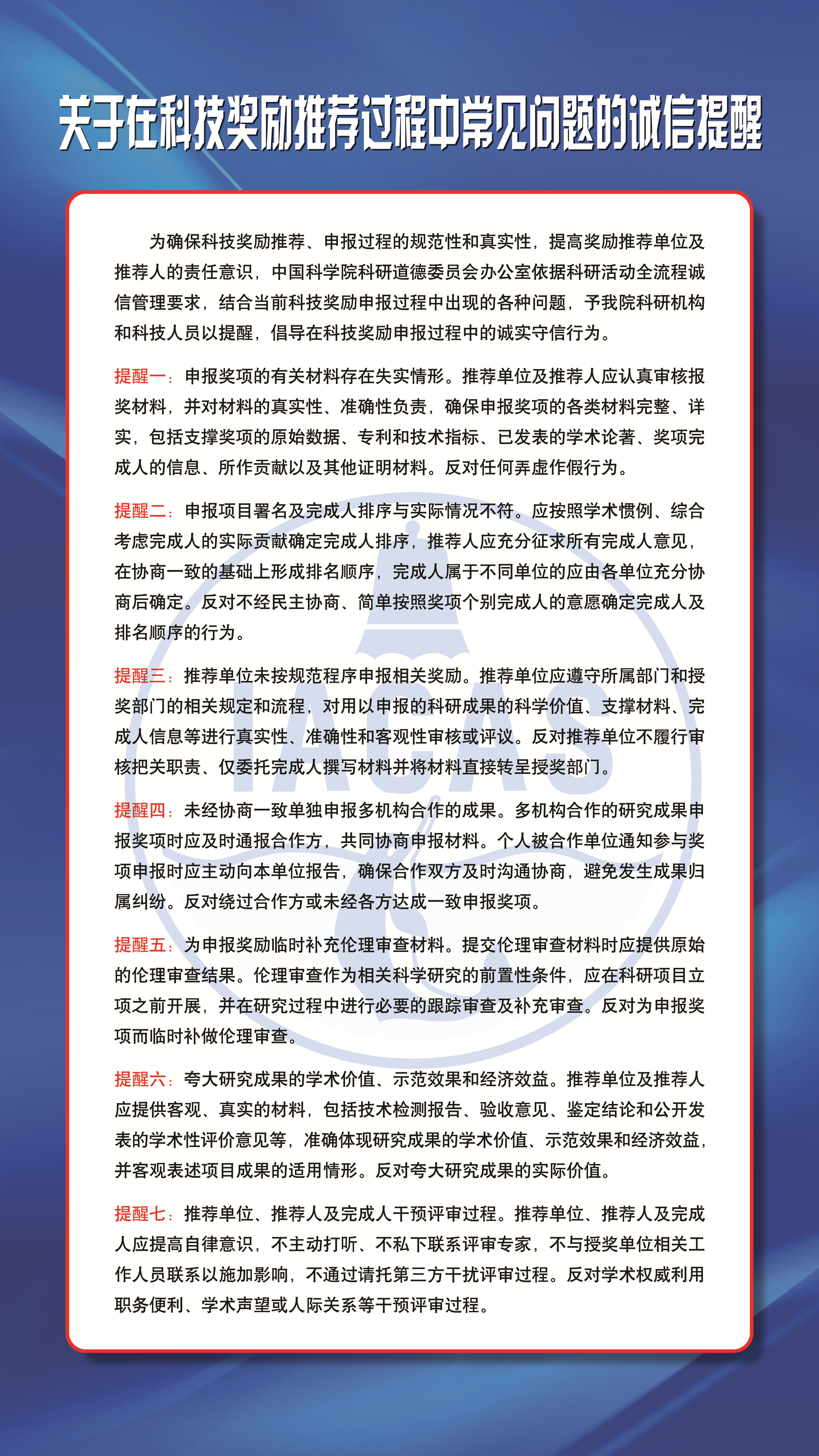 关于在科技奖励推荐过程中常见问题的诚信提醒