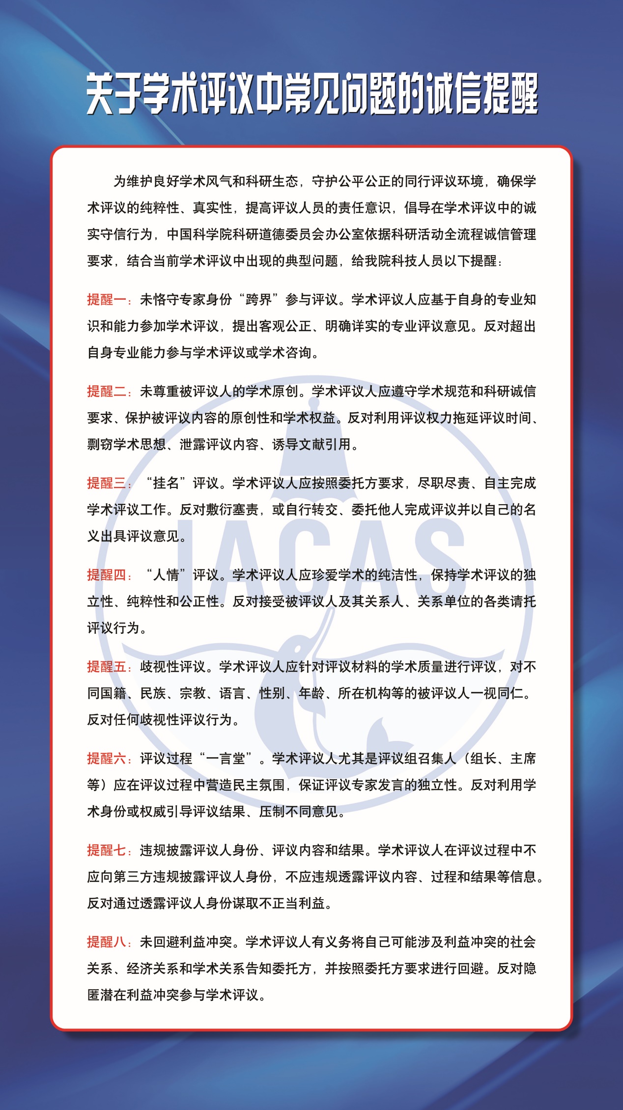 关于学术评议中常见问题的诚信提醒