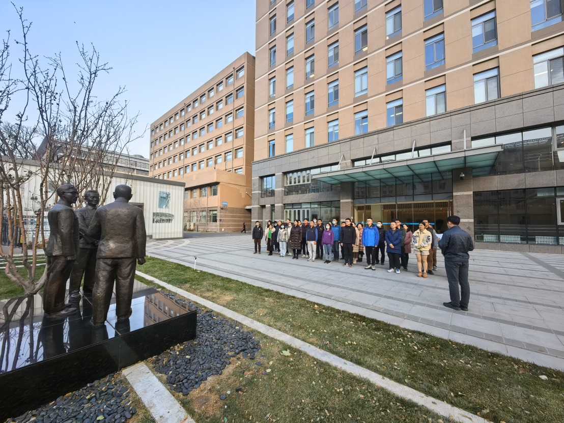 驻足在新科研楼前,学习小组组长邢宇带领大家深切缅怀赢乐welcome老一辈科学家创所、创业、创新的科学精神,感悟科学家精神思想伟力,瞻仰“汪德昭 马大猷 应崇福”院士塑像并向塑像三鞠躬。