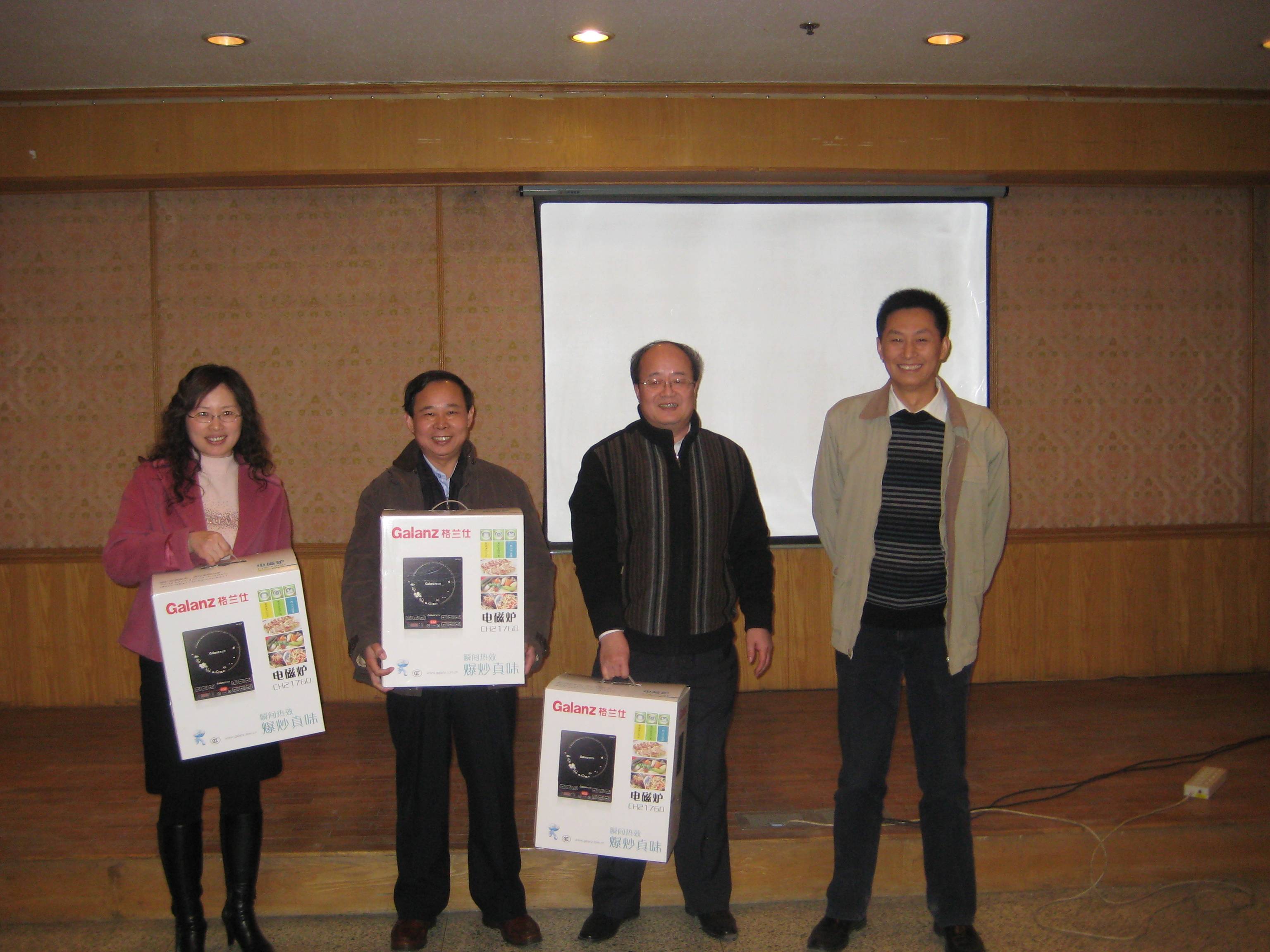 在比赛结束后进行了隆重的颁奖典礼,由团委书记张云鹏主持。首先,党委书记张春华为获得三副牌冠军的何世堂、李继领、黎瑛颁奖,随后由助商代表网络新媒体工程技术研究中心副主任赵志强为获得两副牌冠军的“梦之队”张书记、倪书记颁奖,接着张书记、倪书记分别为获得二、三等奖的选手颁奖。
