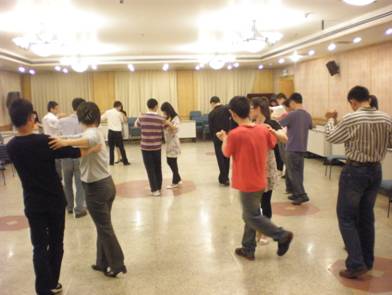 晚七点,伴着优美的音乐,舞会正式开始了。在舞蹈老师的指引下,到场的男女同学们分别站成两排,开始了舞步的学习。这两次舞会的教导内容是平四与慢三,指导老师们由浅入深带领大家进行学习,取得了不错的效果。在同学们都熟悉了舞步之后,各男女生们分别结为舞伴,在舒缓的慢三慢四节拍中开始翩翩起舞。